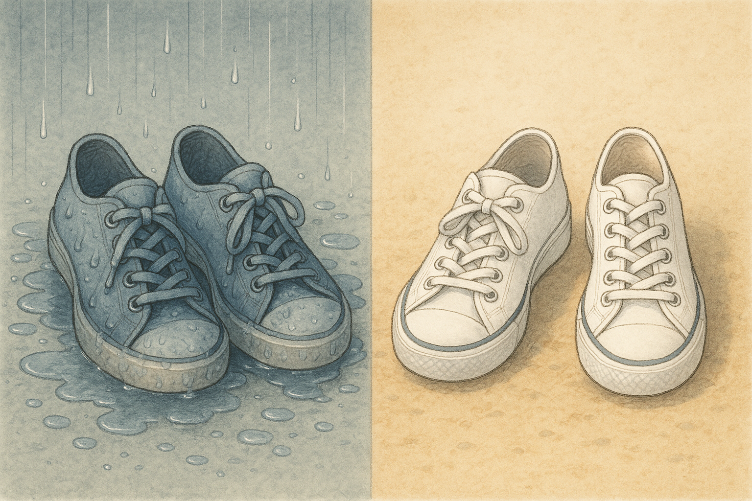 여러분, 저 오늘 출근길에 비 맞고 운동화 다 젖었어요 ㅠㅠ 우산도 썼고, 바지도 별로 안 젖었는데… 그놈의 발목 위를 타고 들어오는 빗물, 진짜… 왜 하필 운동화냐고요? 😭